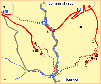 Ort: Rinnthal (190 m) Parken: Wanderparkplatz im Wellbachtal (210 m, von der Bundesstraße 10 zwischen Annweiler und Hauenstein Richtung Johanniskreuz abbiegen und noch etwa 3 km ins Wellbachtal bis zur Abzweigung Annweiler Forsthaus) Länge: 16 km Anstieg: 730 Höhenmeter Schweiß: Happig Aussicht: Einmalig Abgeschiedenheit: Immens (erste Tourenhälfte), dann belebter Orientierung: Nicht ohne (beim Abstieg vom Almersberg)