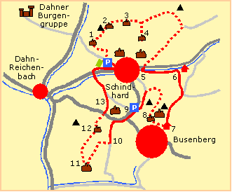 Rundwanderung 50 Die Dahner Felsen- und Burgenrunde (ab Sportplatz nach Nordwesten zum Parkplatz unterhalb der
