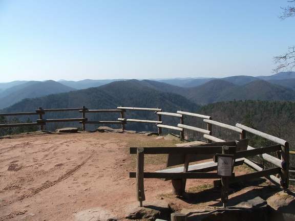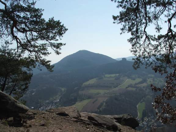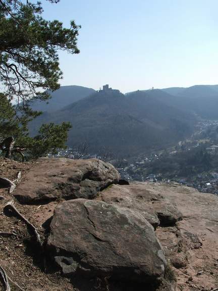 von dem wir über das tief unter uns liegende Annweiler hiweg ein großartiges