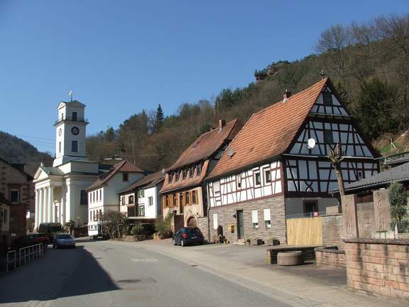Häuser neben der Kirche in Richtung Annweiler finden wir einen schmalen