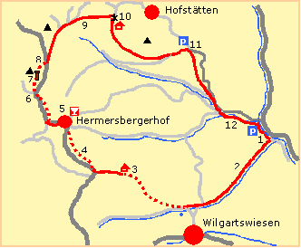 auf die markantesten hin. Als einzige Ansiedlung ist der Hermersbergerhof zu sehen.