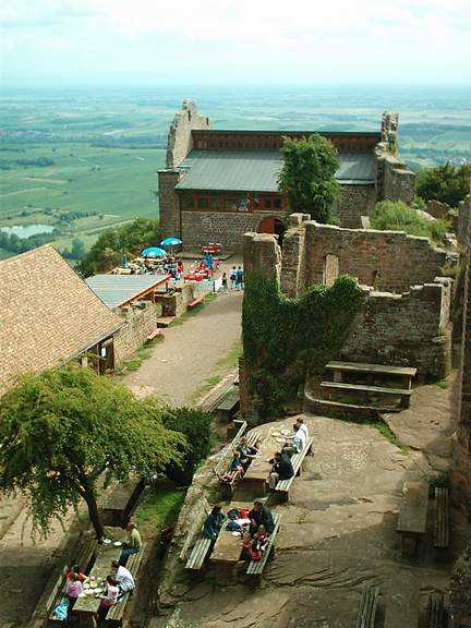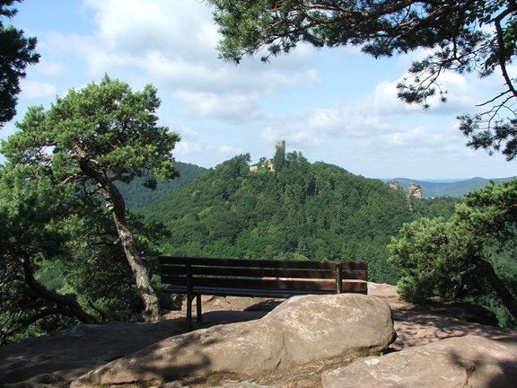 als auch in der anderen Richtung weit in den Wasgau hinein. Die Burgschänke und der kurze Anstieg tun ein Übriges, um viel Publikum hierher zu locken.