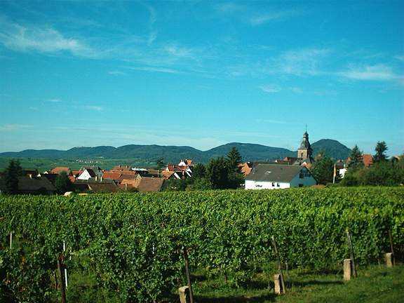 romantische Allee (Bild oben) zwischen Weinbergen und Kastanienwald hinüber nach Gleisweiler