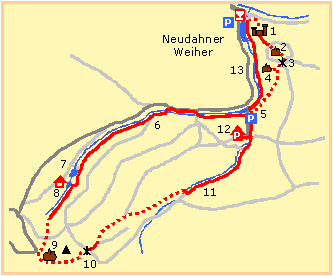Parkplatz am Gasthaus Neudahner Weiher kurz zurück, nach rechts etwa 50 m auf dem Lautertal-Radweg