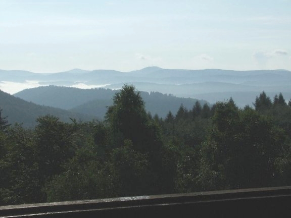 Gipfel prägen die Aussicht; wir orientieren uns am Donnersberg-Massiv im