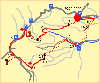 Schutzhütte an der Straße zwischen Iggelbach und Johanniskreuz zu gelangen.