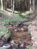 hinunter ins Obere Hundsbachtälchen, wo wir auf einem Holzbrückchen