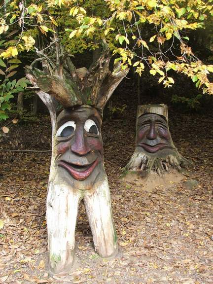 der „Waldgeisterweg“. Auf einer Weglänge von 2 km hat der Holzschnitzer Volker Dahl aus Baumstümpfen und Wurzeln eine ganze