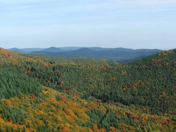 dominierenden Annweilerer Gipfel Rehberg, Adelsberg und Orensberg bis zur