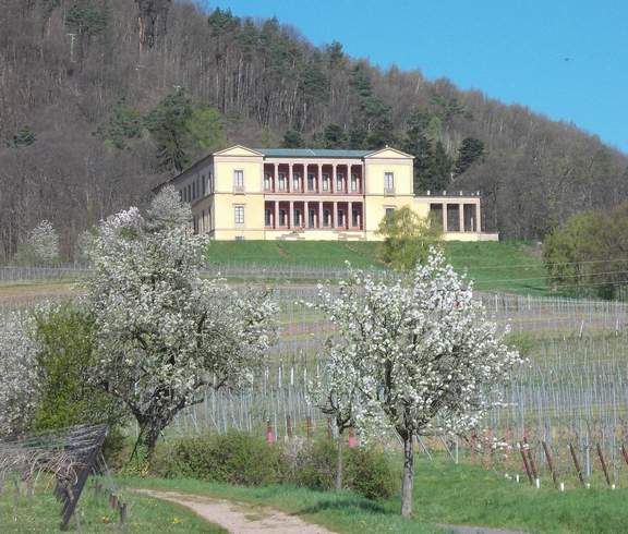 über den Weinbergen von Rhodt auf einen Schlosspark verzichtet habe. Die Villa