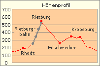 Zu Fuß auf die Rietburg (ab Talstation steiler Schängelpfad, 2 km und viel