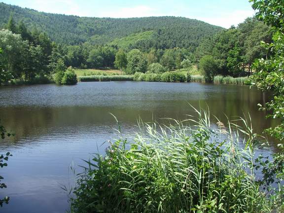 Schaf-Kopf und Hütten-Berg einfügt. Am linken Ende des Weihers informiert ein