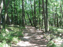 des Hütten-Berges hinab. Dort, wo der samtweiche Pfad auf einen breiten Weg