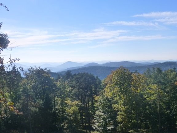 dem Elmsteiner Tal und der Kalmit, der höchsten Erhebung des Pfälzerwaldes,