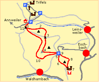 Routenempfehlung steuert die Madenburg von der Trifelsstraße her an und