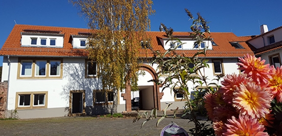 nassauisches Jagschlösschen. Es liegt an der wenig befahrenen L 396, die von Göllheim