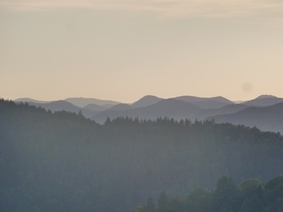 Die tief gestaffelten Wasgauberge vom Schuhmacherfelsen