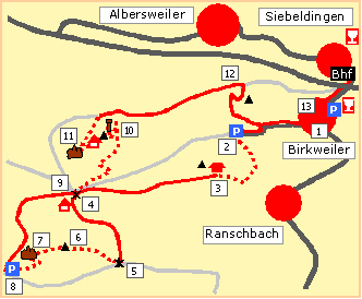 die Gipfelziele, gestartet wird im Winzerdorf Birkweiler.