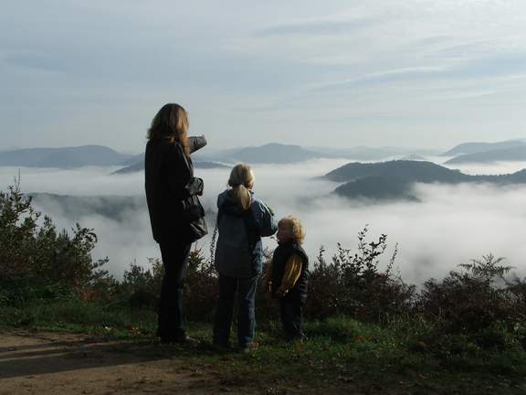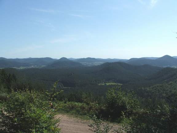 Pfälzerwaldgipfel gehört, von einem Aussichtsturm gekrönt. Der Blick