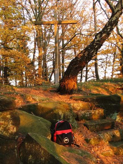 und rechts in die Straße "Am Kreuzberg". Hier beginnt der „Wolkenbruchweg“
