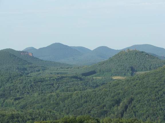 Von der Drachenfelshütte des Pfälzerwald-Vereins ersteigen wir in fünf Minuten die Burgruine Drachenfels (367 m). Als typische Felsenburg auf einem 150 Meter langen Felsenschiff errichtet gibt sie mit ihren Kammern, Treppen und Felsgängen der Phantasie reichlich Nahrung. Durch herrliche Wälder laufen wir weiter zur Schutzhütte am Jüngstberg und ins stille Scharbachtälchen. Drei weitere Felsen bilden die markanten Punkte des letzten Wegstückes: Der Sprinzelfelsen auf dem Dickenberg, der Eilöchelfels und der Eichelberg mit dem Panoramaplatz Wasgaublick, wo wir über den Dächern von Busenberg stolz einen großen Teil unseres Weges überblicken. Hotelpension