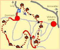 großartigen Ausblicken treffliche Rastplätze ab. Der Dimbacher Buntsandstein Höhenweg