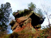 Felsentor und stark ausgeprägten, durch Erosion entstandenen Felsüberhängen.