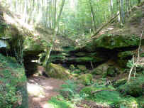 den Toren von Pirmasens, wo der Pfälzerwald in die Bauernlandschaft des Westrich übergeht, liegt die Hexenklamm. Über Jahrmillionen hat sich