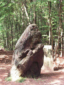 Weg liegen der große Menhir "Hinkelstein" und das Naturschutzgebiet