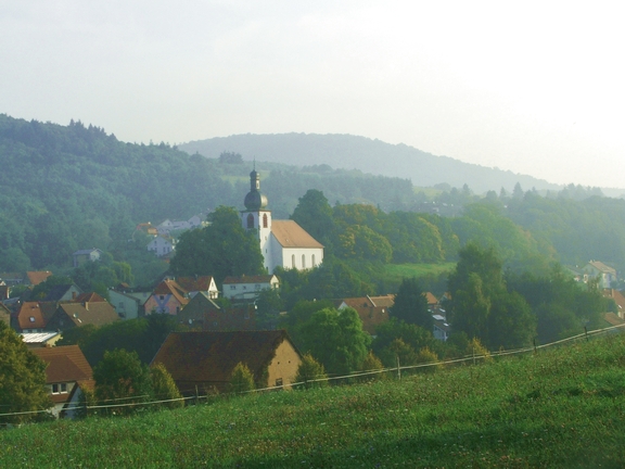ereignislos zum fast 500 m hoch gelegenen Ruppertsecken, dem höchsten Kirchdorf der Pfalz