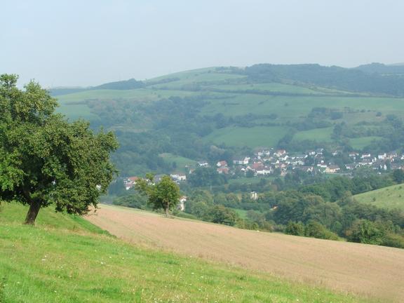 an der Lauter entlang, dann über einen wiesenreichen Höhenzug mit wunderbaren Ausblicken über das