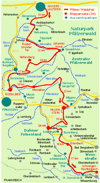 Wanderkarte (erhältlich bei Pfalz-Touristik oder den örtlichen