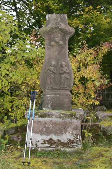 Kreuz, einem historischen Pilgerstein.