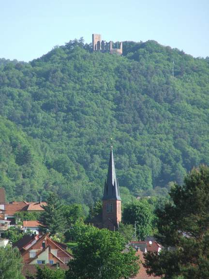 Ruine Neu-Scharfeneck und in südlich gelegene Trifelsland.