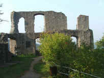 Dörfchen. Der dunkle Felsrücken, auf dem die Burg im 12. Jahrhundert