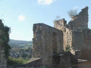 Resten der ursprünglichen Burg schaut man über das Leininger Tal in den