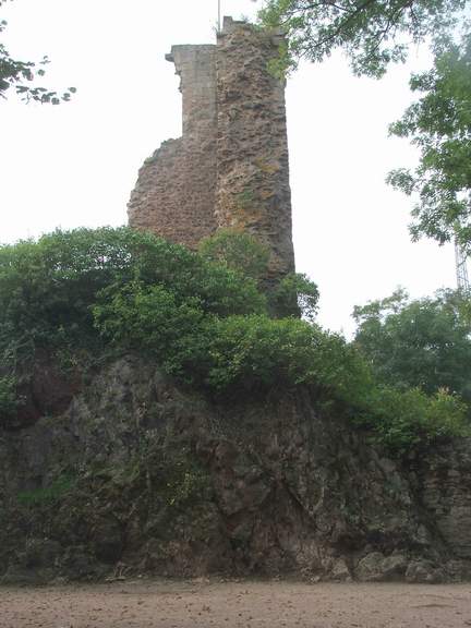 weitläufige Anlage. Erhalten sind der die Anlage überragende Bergfried,