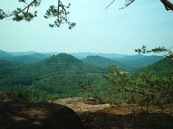 der viel besuchten Burgruine Lindelbrunn im Herzen des Wasgaus sieht man in nordöstlicher Richtung ein kollosales,