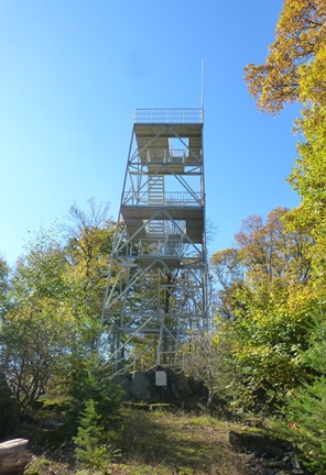 nördlich noch 15 m höher liegt. Mit seinem Aussichtsturm, der Fülle von