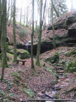 angelegten Wasserschaupfades. Bizarre Felsgebilde und klammartige