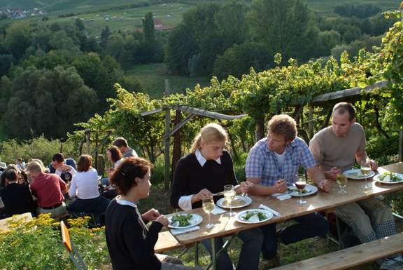 Weinstuben ein oder gönnen sich eine Gourmet-Mahlzeit in einem